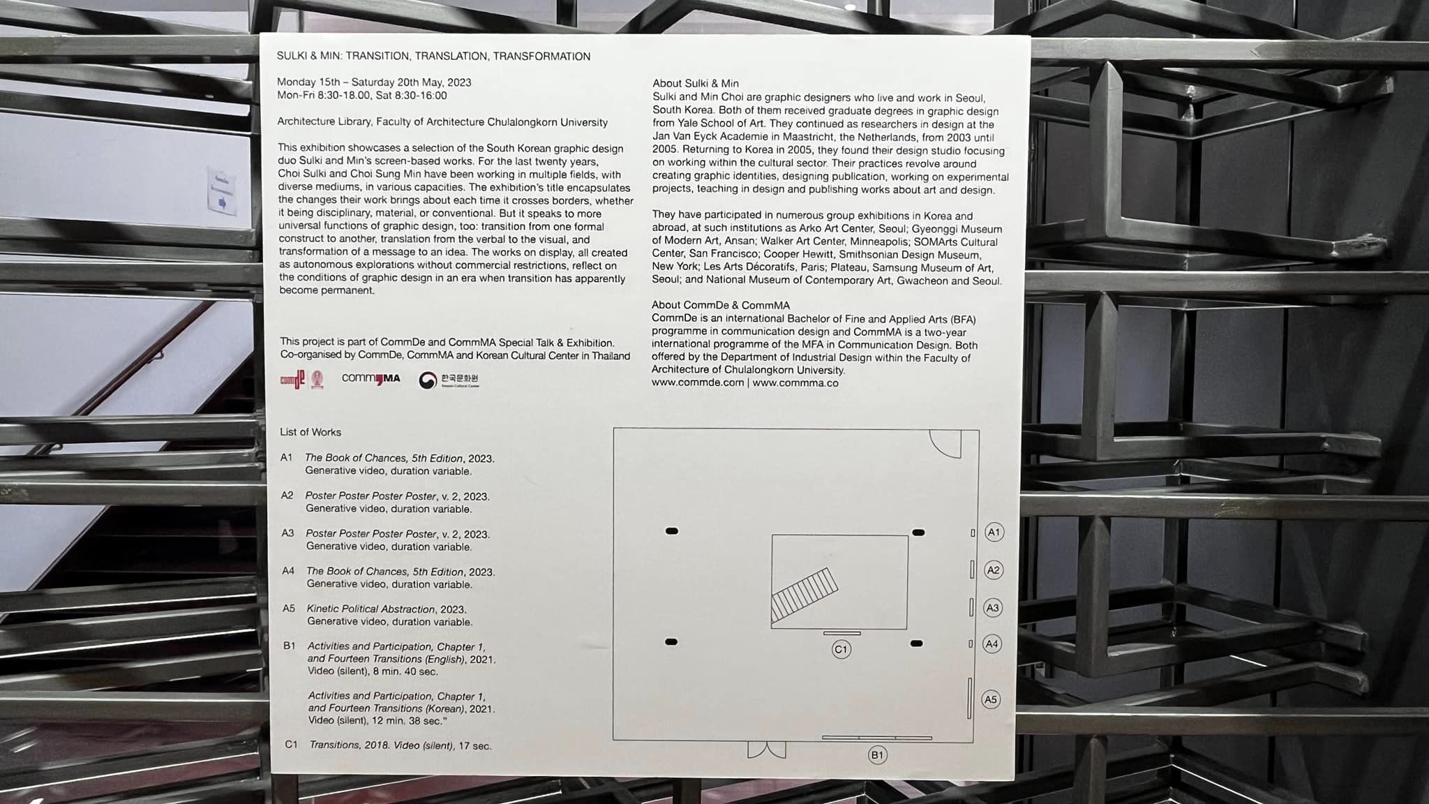 5월 18일 문화원과 태국 쭐라롱껀대학교 건축학부 커뮤니케이션 디자인과는 쭐라롱껀대 건축학부 도서관에서 '슬기와 민 : Transition, Translation, Transformation' 전시 개막식을 개최했습니다.