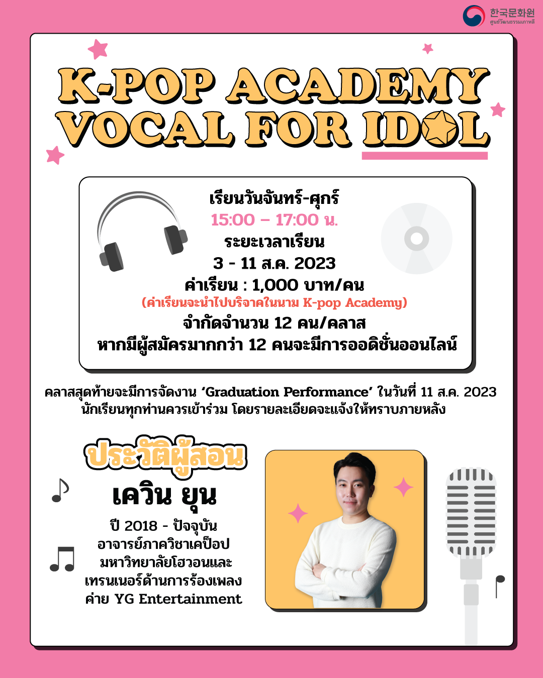 문화원은 8월 3일부터 11일까지 <2023 케이팝 아카데미> 보컬 강좌를 운영합니다.