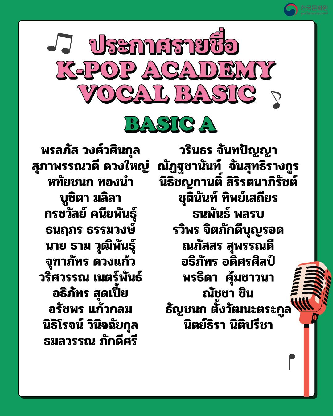 2023 케이팝 아카데미 - 보컬 강좌 수강생 명단 발표