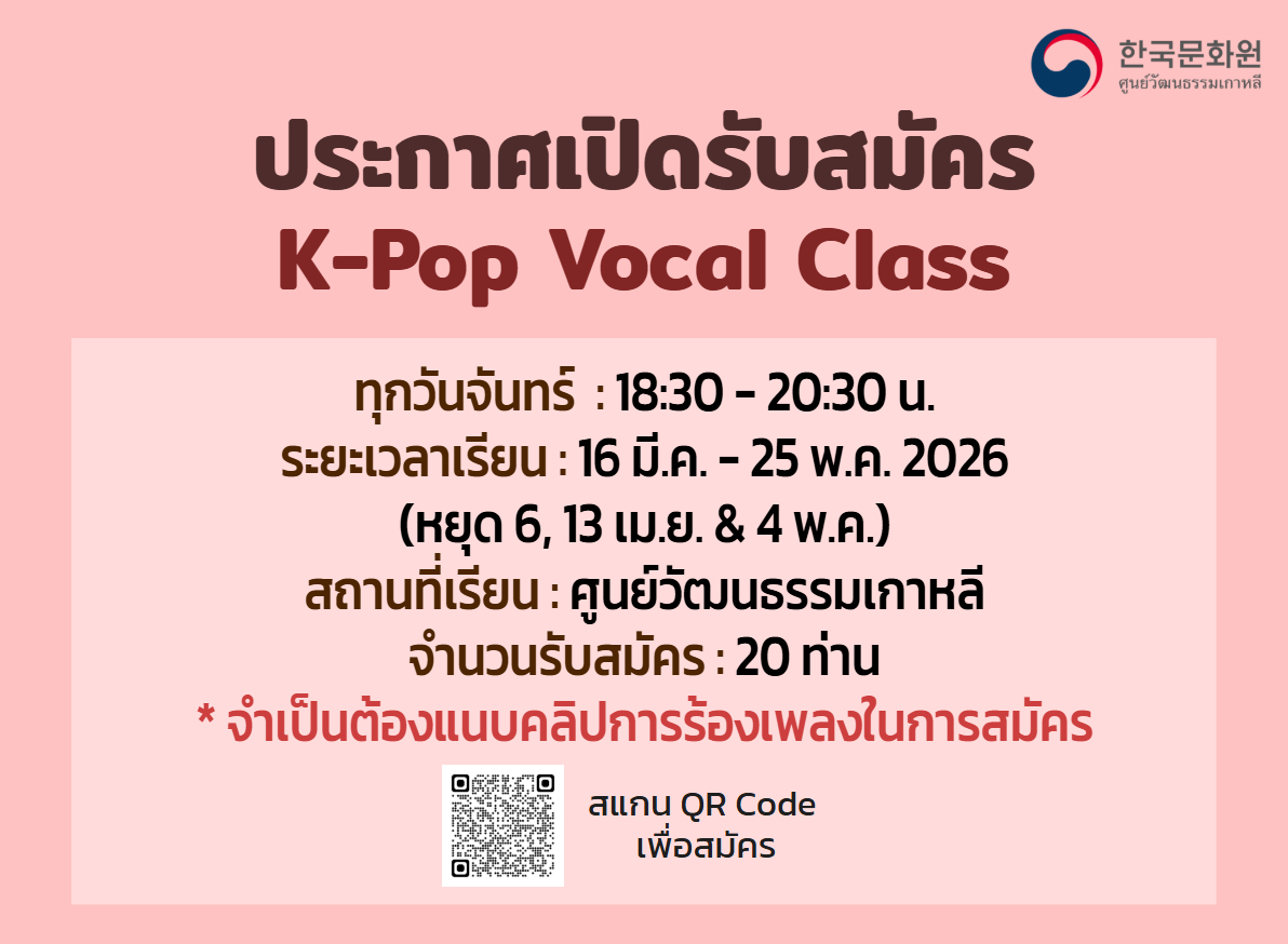 문화원은 케이팝 보컬 강좌 수강생을 모집합니다. 많은 관심 바랍니다.