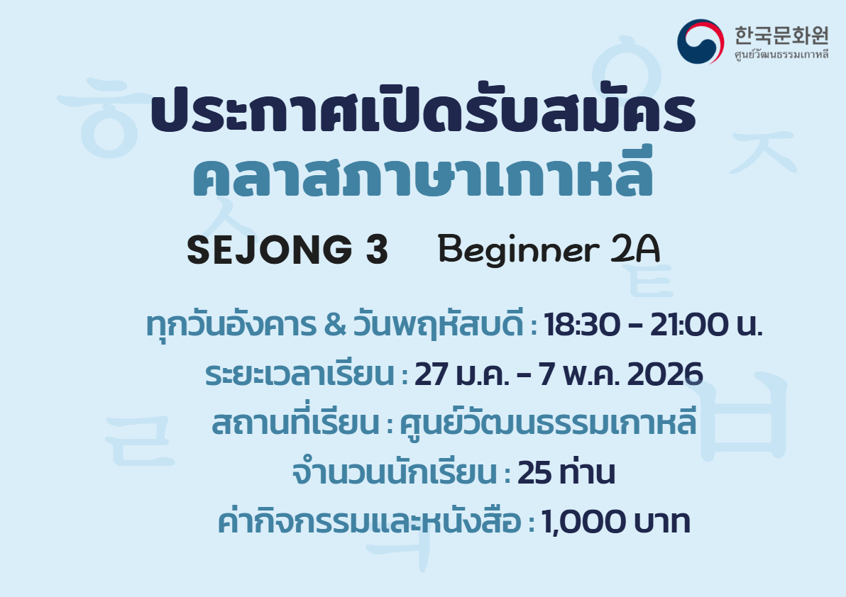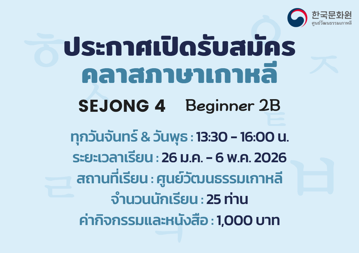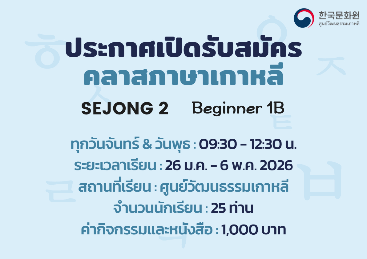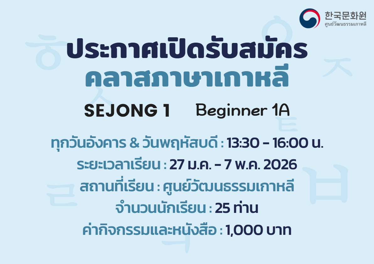 2026학년도 1학기 문화원 세종학당 한국어 강좌 수강생을 모집합니다.