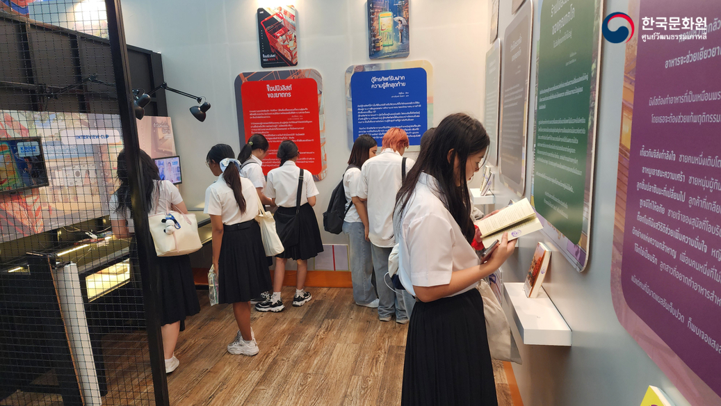 ในวันนั้น ทุกท่านได้เยี่ยมชม นิทรรศการ K-Book ประจำปี 2025 ซึ่งรวบรวมหนังสือเกาหลีทั้งต้นฉบับและฉบับแปลไว้ให้เลือกอ่านอย่างอิสระ พร้อมทั้งได้ร่วมสนุกกับกิจกรรมทางวัฒนธรรมมากมาย ไม่ว่าจะเป็นการสวมชุด ฮันบก, การละเล่นพื้นบ้านเกาหลี และการประดิษฐ์ หน้ากากพื้นบ้านเกาหลีด้วยกระดาษฮันจี ที่ทุกท่านได้สร้างสรรค์ผลงานของตนเองอย่างสวยงามและมีเอกลักษณ์