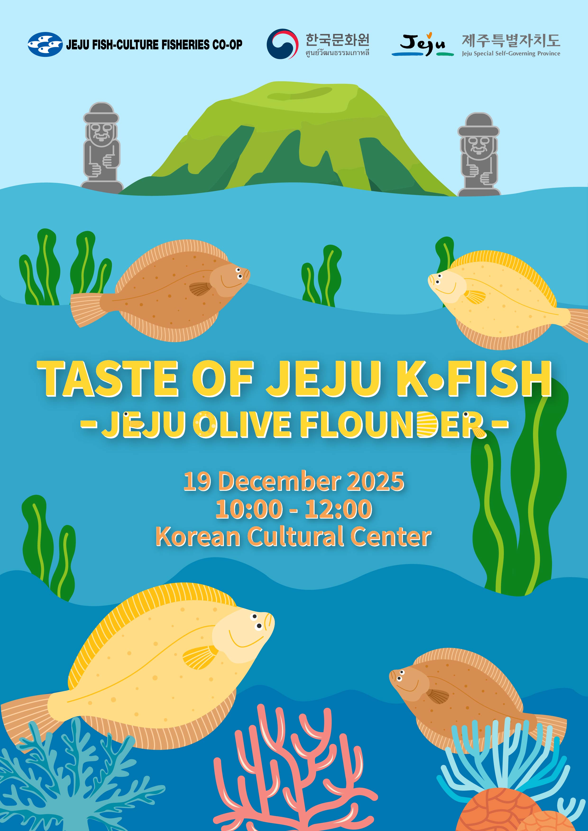 ขอต้อนรับทุกท่านเข้าสู่งาน 'TASTE OF JEJU K-FISH' วันที่ 19 ธันวาคม ณ ศูนย์วัฒนธรรมเกาหลี!