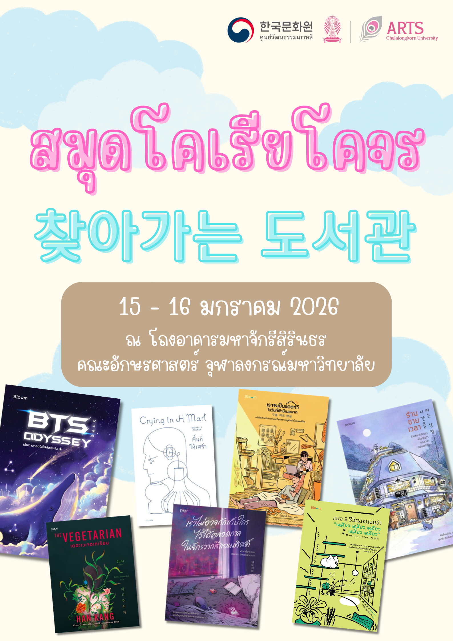 ห้องสมุดเกาหลี KCC เตรียมเคลื่อนขบวนไปเยือนจุฬาลงกรณ์มหาวิทยาลัย ! เตรียมพบกับหนังสือเกาหลีมากมายภายในโครงการ 'สมุดโคเรียโคจร' ตามกำหนดการด้านล่าง