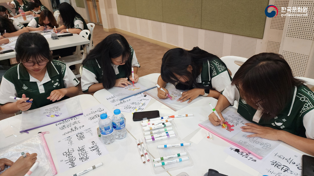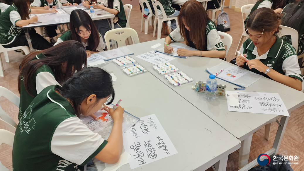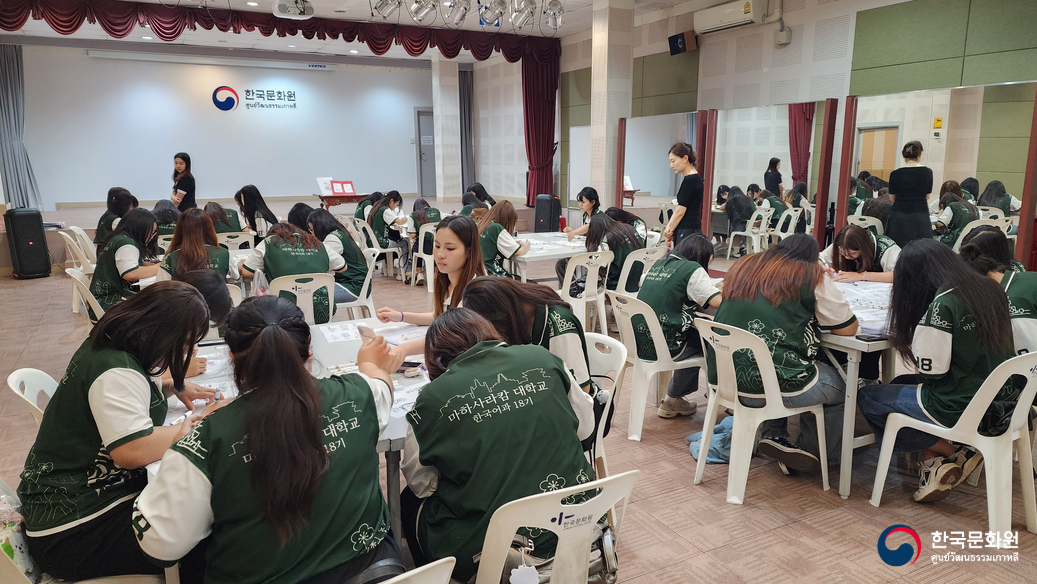 ในวันนั้น ทางศูนย์ฯ ได้เตรียมกิจกรรมการทำหัตถกรรมเกาหลีอย่างการวาดตัวอักษรฮันกึล ให้นิสิตทุกท่านได้เข้าร่วม นอกจากนี้ ทุกท่านยังได้ลองสวมชุดฮันบก และเพลิดเพลินกับการละเล่นพื้นบ้านเกาหลีอีกด้วย