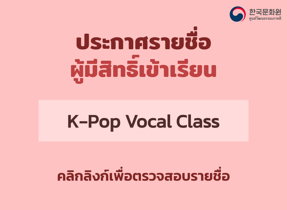 ประกาศรายชื่อผู้ที่ได้รับสิทธิ์เข้าเรียน K-Pop Vocal Class ภาคการศึกษาที่ 1/2026