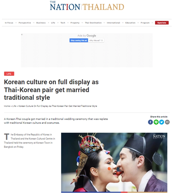 The Nation : Thai – Korean couple get married Korean style in Bangkok